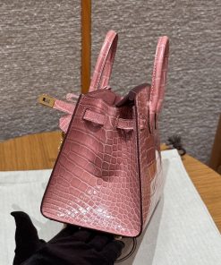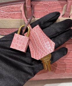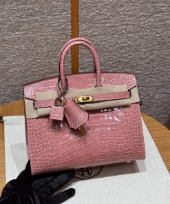 Platinum 20cm, bột sữa lắc, nhập khẩu từ Pháp, da cá sấu Mỹ sáng bóng, đường may bên ngoài, khóa vàng, cao cấp, hoàn toàn thủ công theo yêu cầu ‼️