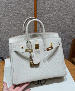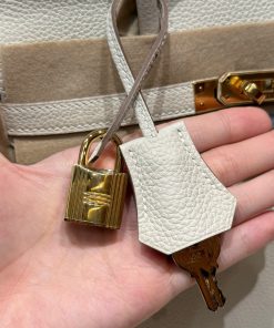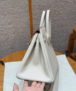 Platinum 25cm, Trắng sữa lắc, Da bò nhập khẩu Pháp, Đường may bên ngoài, Khóa vàng, Tùy chỉnh thủ công chất lượng cao‼ ️