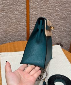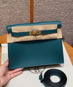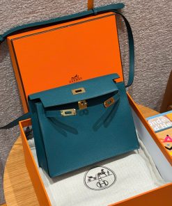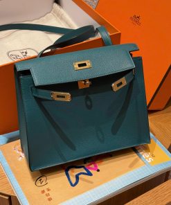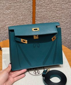 Túi Kelly Danse, màu xanh Bosphorus, da Eve, nhập khẩu từ Pháp, da bò thật, khóa vàng, hoàn toàn thủ công, đặt làm riêng độc quyền ‼ ️‼ ️