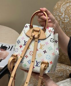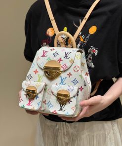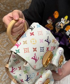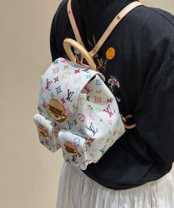 Balo Venice được làm từ vải canvas tráng phủ, nổi bật với họa tiết Monogram với tông màu rực rỡ lấy cảm hứng từ nghệ sĩ Nhật Bản Takashi Murakami, thể hiện tinh thần sống động của bộ sưu tập tái bản x Murakami. Chất liệu da bò cổ điển tạo nên quai đeo vai thanh mảnh, trong khi khóa lớn tạo điểm nhấn ánh kim cho nắp và túi bên ngoài.