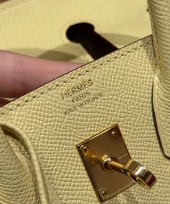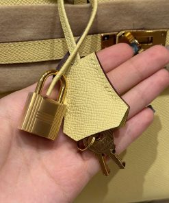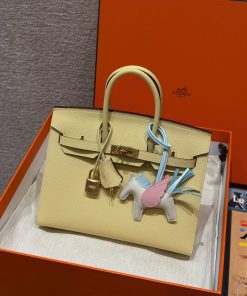 Bạch kim 25cm, màu vàng nhạt, da bò vân cọ nhập khẩu từ Pháp, đường may bên trong, khóa vàng, hoàn toàn thủ công, đặt làm riêng ‼️