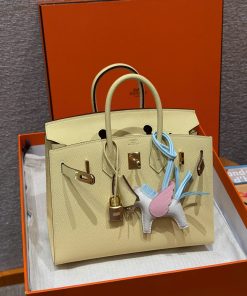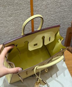 Platinum 25cm, chick yellow, imported French palm-grain cowhide, inner seams, gold buckles, fully handcrafted, custom-made ‼ ️
