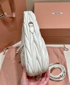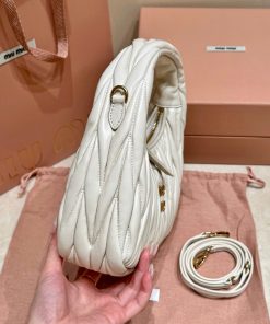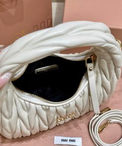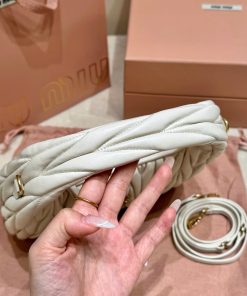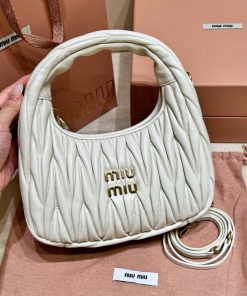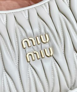 • Logo kim loại Miu Miu ánh vàng ở mặt trước.
