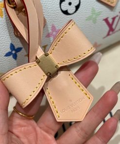 • Leather bow charm attached to the Louis Vuitton Paris tag (an additional decorative detail, usually not the default of the Multicolore Speedy line, can be an accessory).