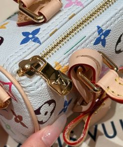 • Mẫu: Louis Vuitton Speedy 25 (hoặc Nano/BB tùy size) trong phiên bản Multicolore White. Đây là dòng Speedy Boston Bag thu nhỏ, có quai xách tay đôi và dây đeo chéo tháo rời.