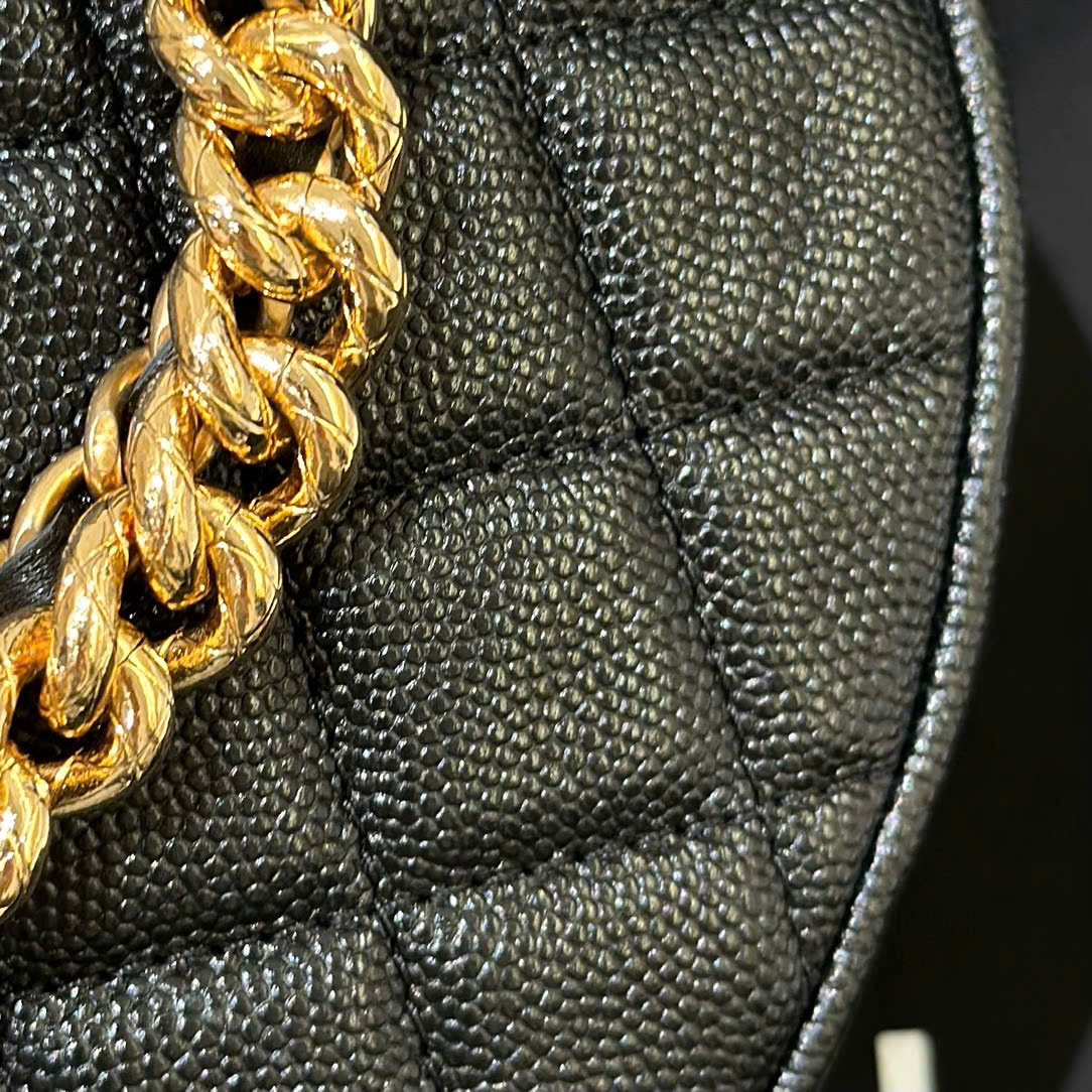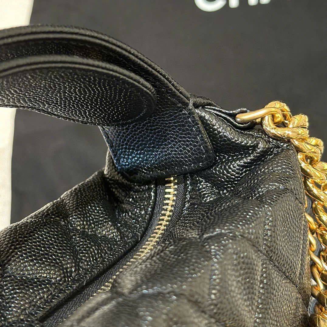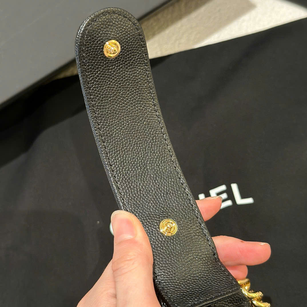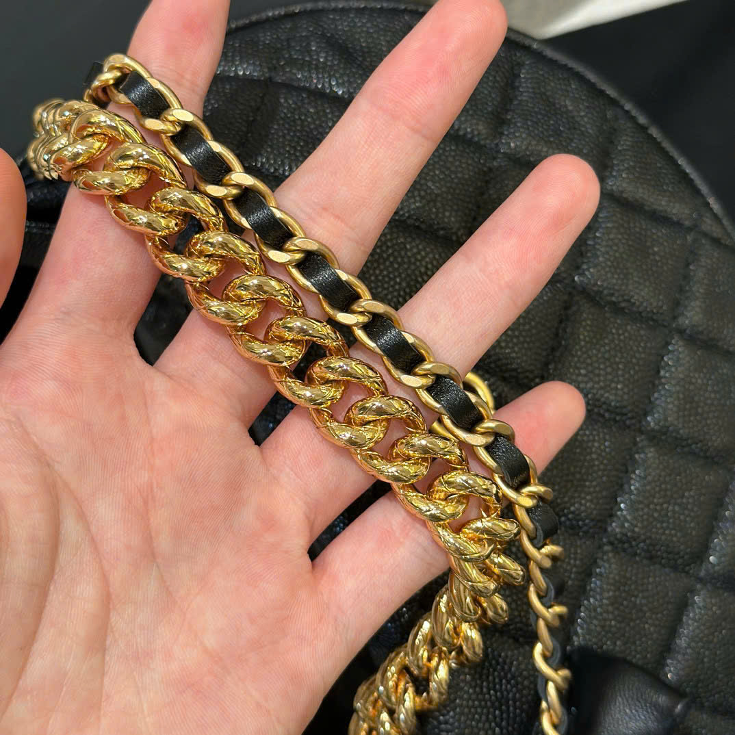 • Chất liệu: Da caviar (sần nhẹ, bền và chống xước tốt), màu đen cổ điển.