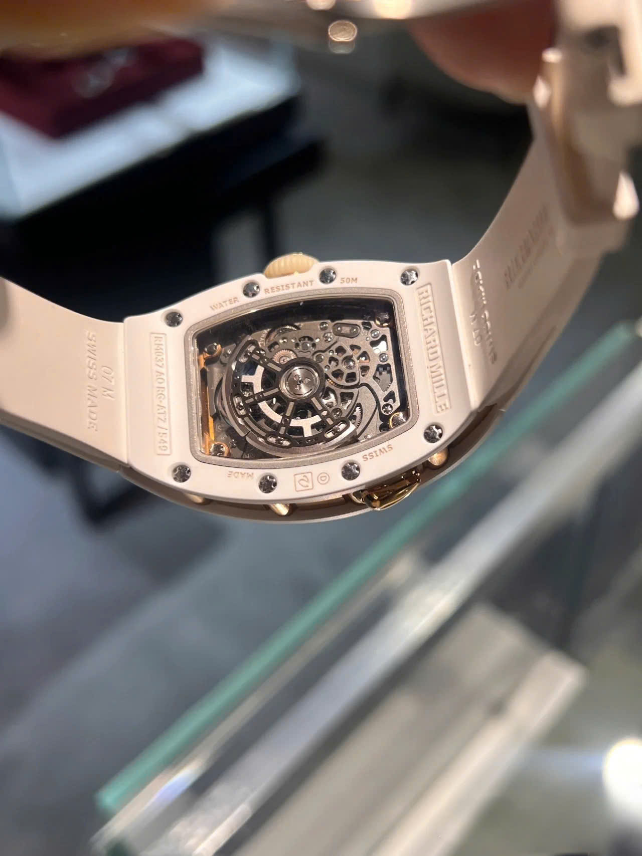 • Form tonneau (hình thùng rượu) đặc trưng, phong cách Richard Mille.