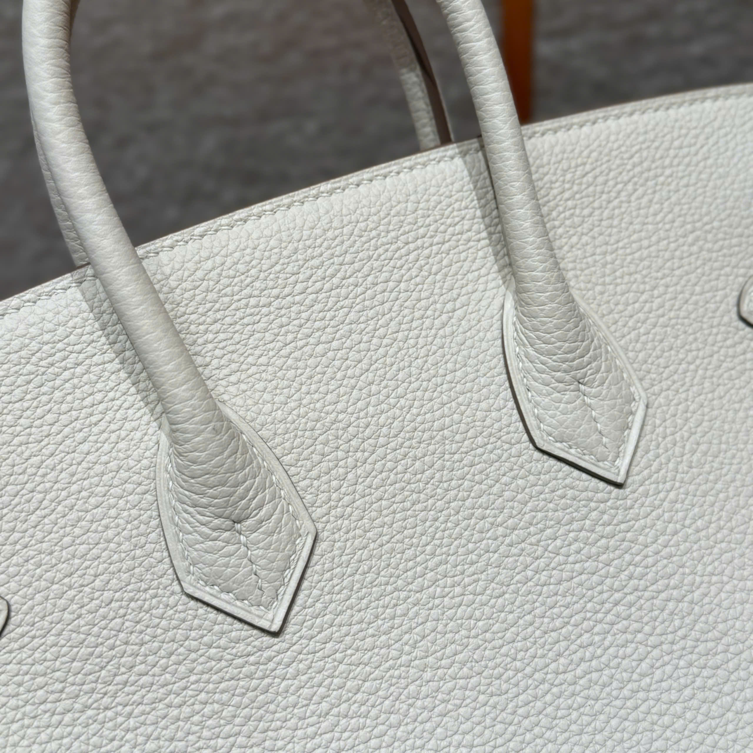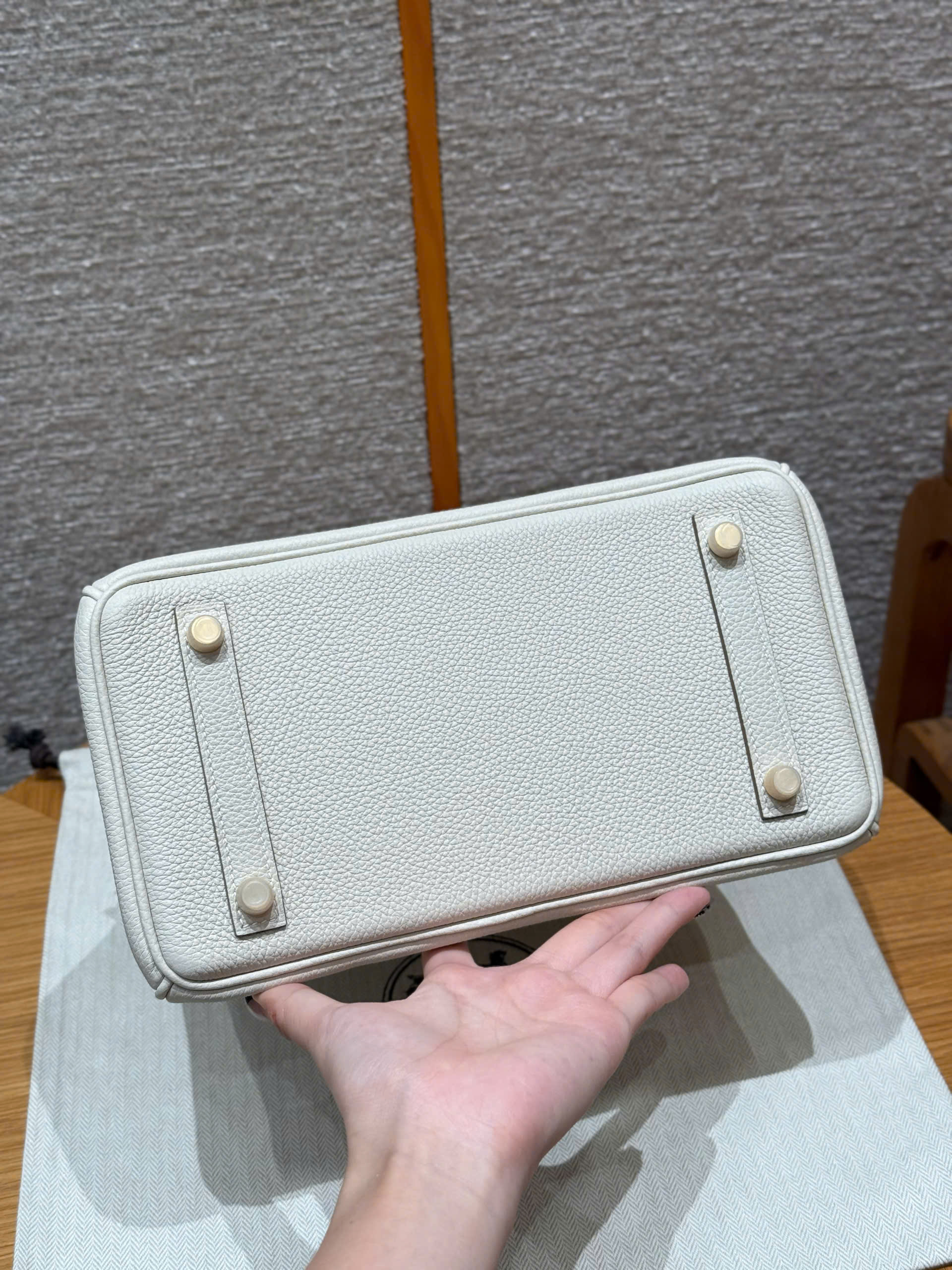 Platinum 25cm, Milkshake White, Imported French Cowhide, Outer Seams, Gold Buckles, High-Quality Handmade Customization‼ ️
