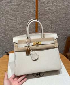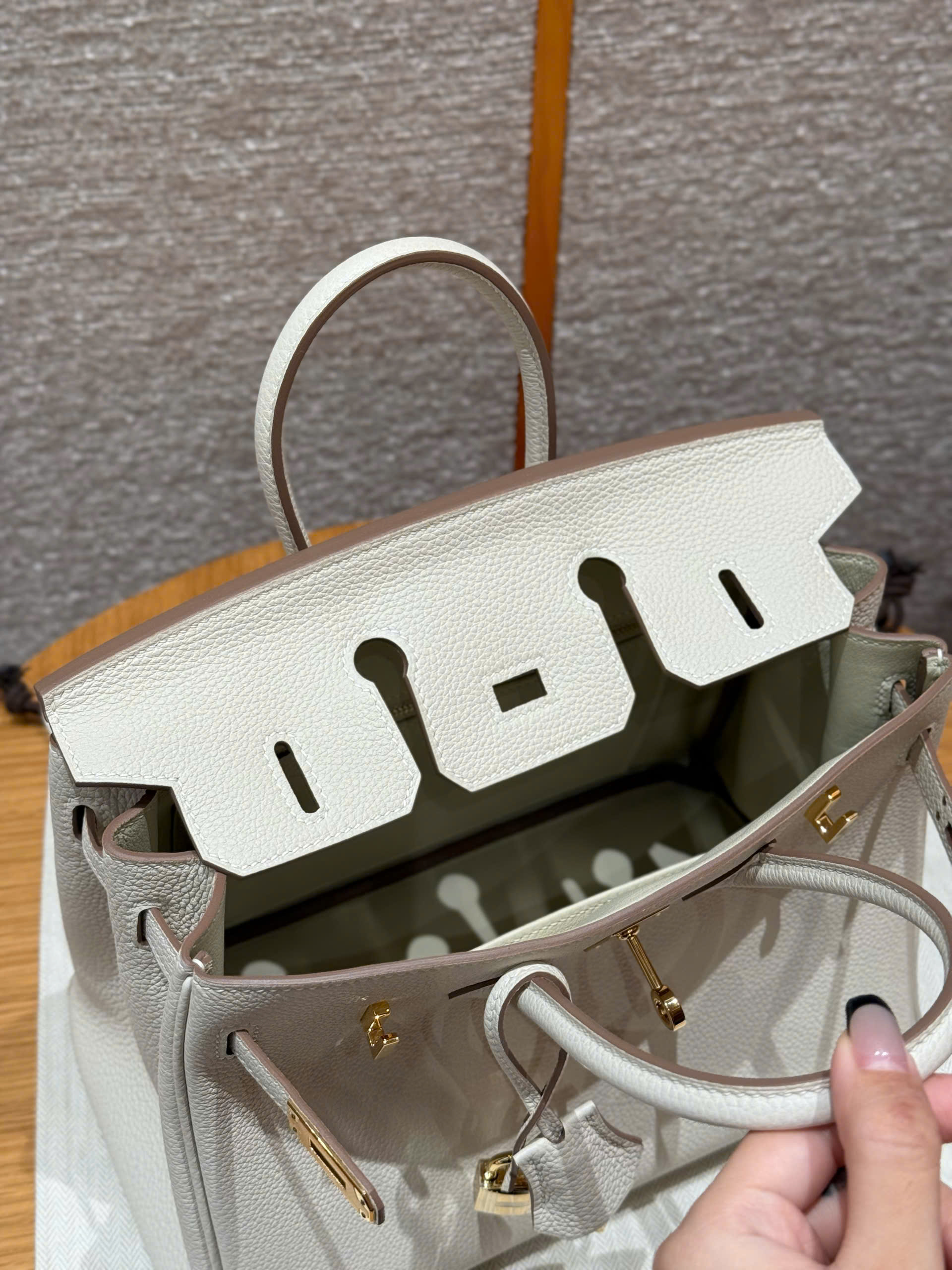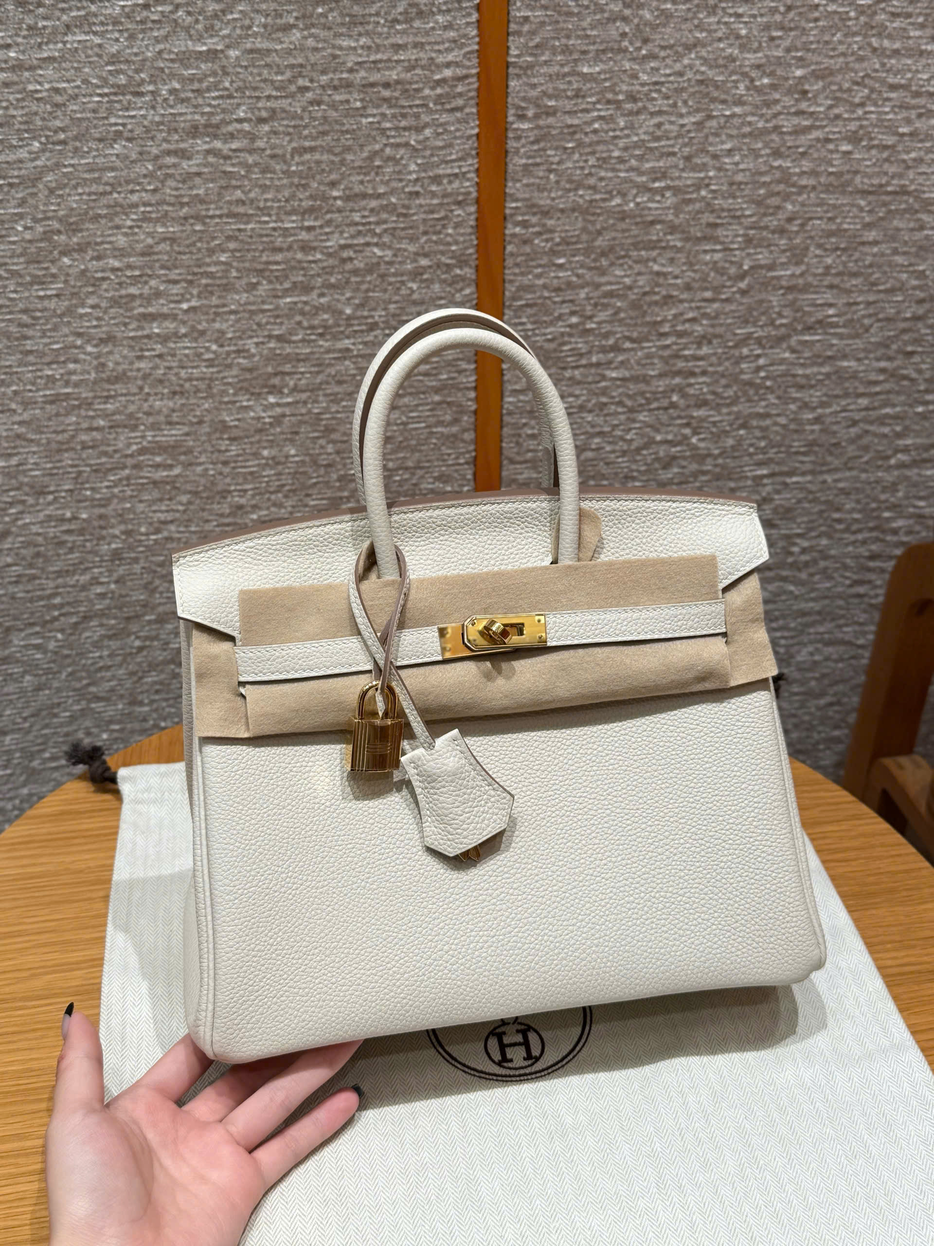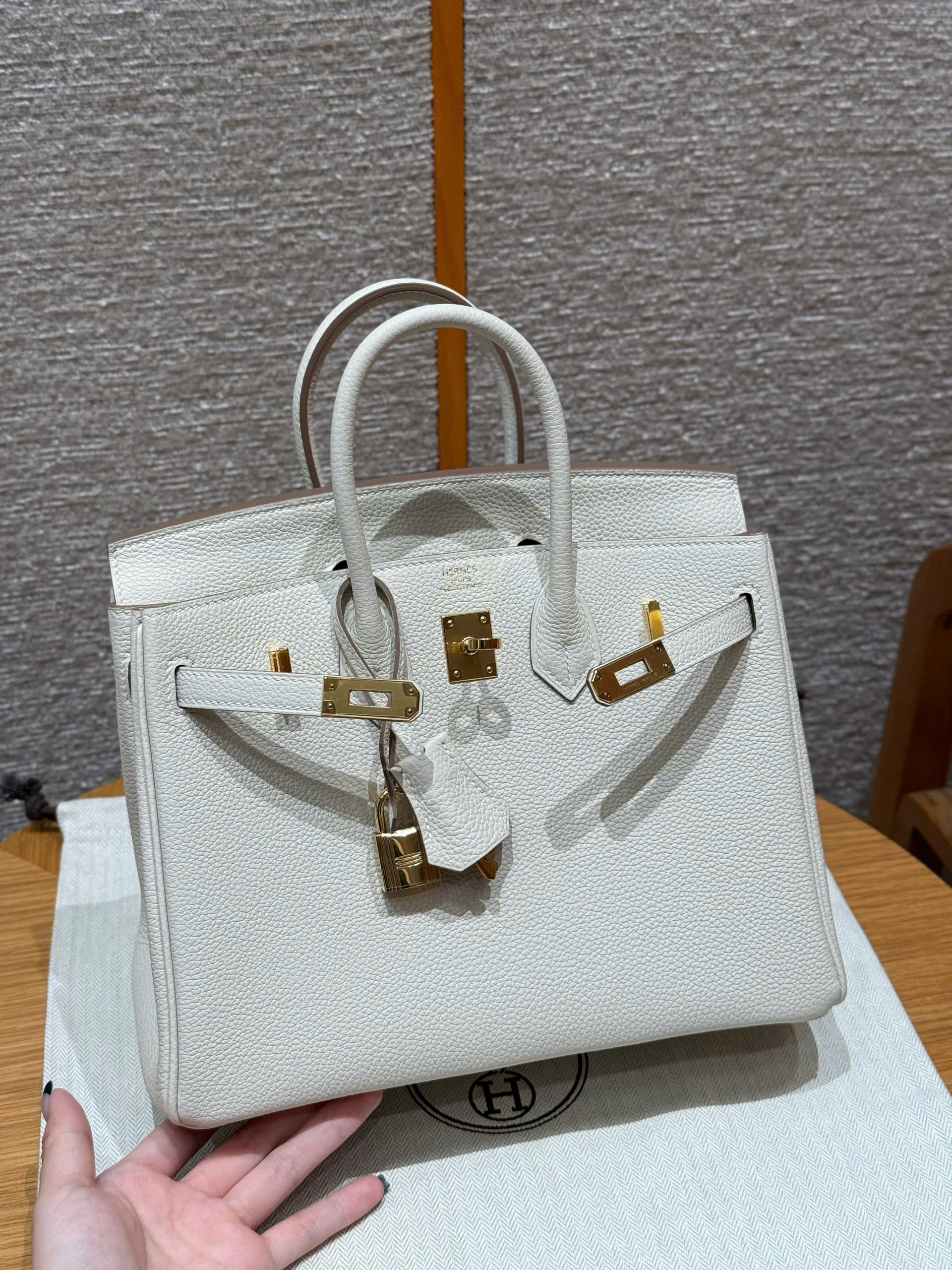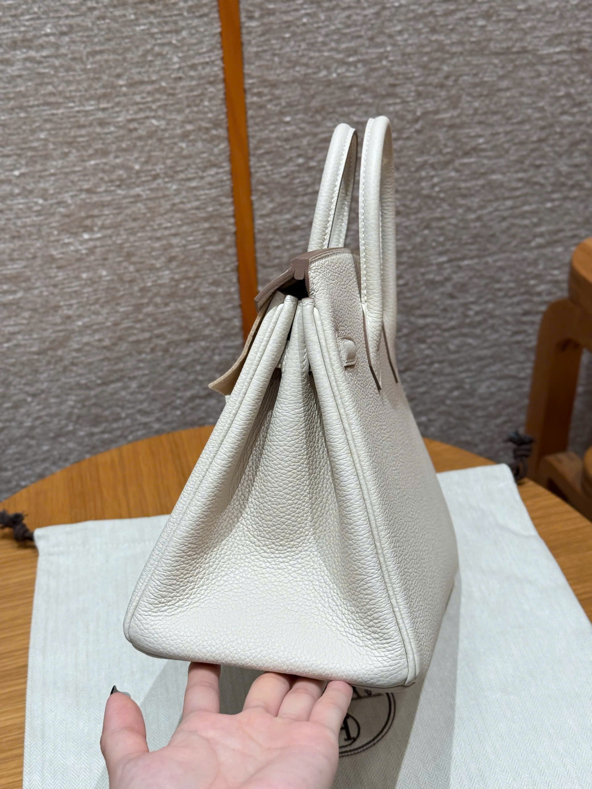 Platinum 25cm, Trắng sữa lắc, Da bò nhập khẩu Pháp, Đường may bên ngoài, Khóa vàng, Tùy chỉnh thủ công chất lượng cao‼ ️