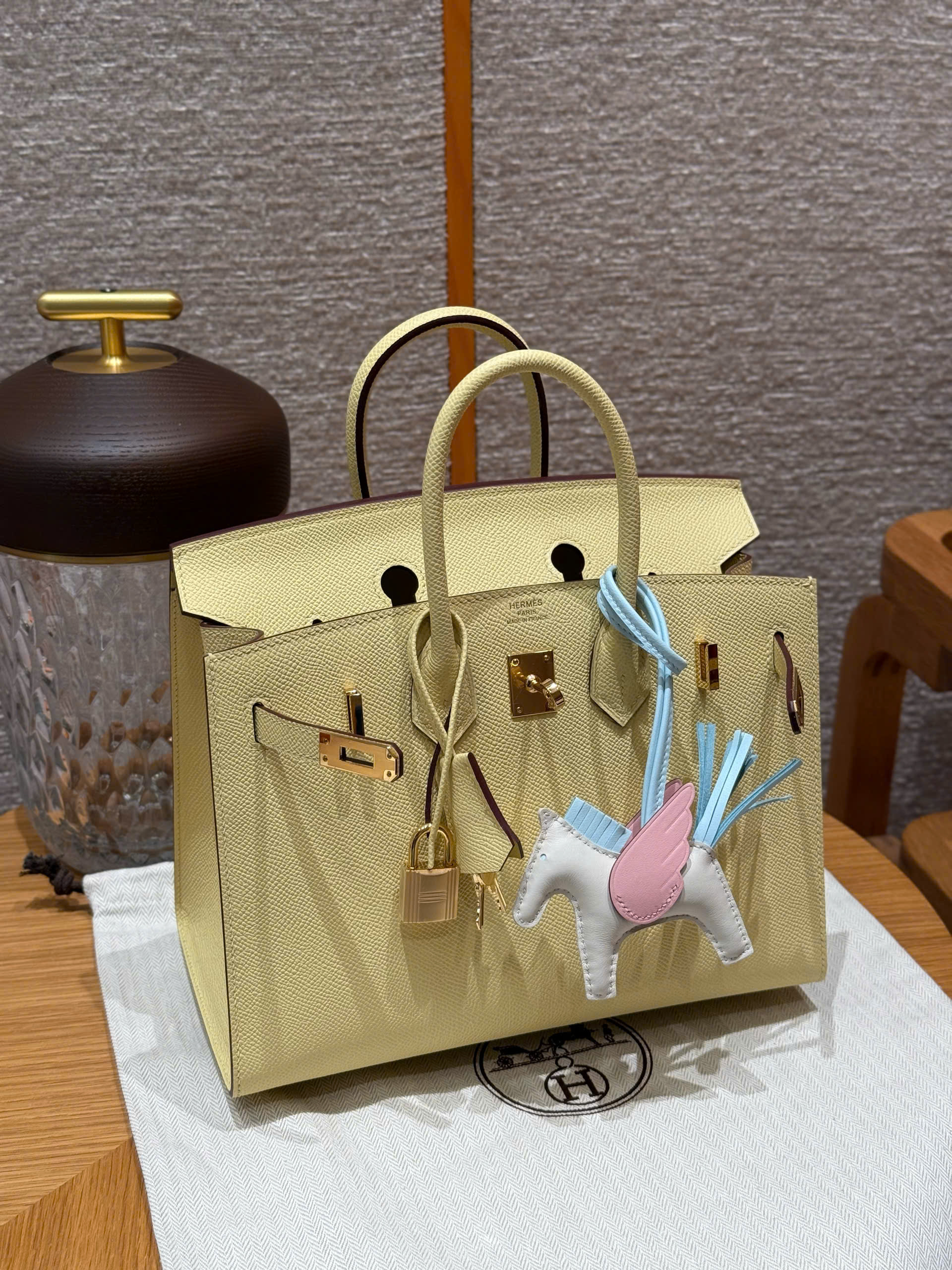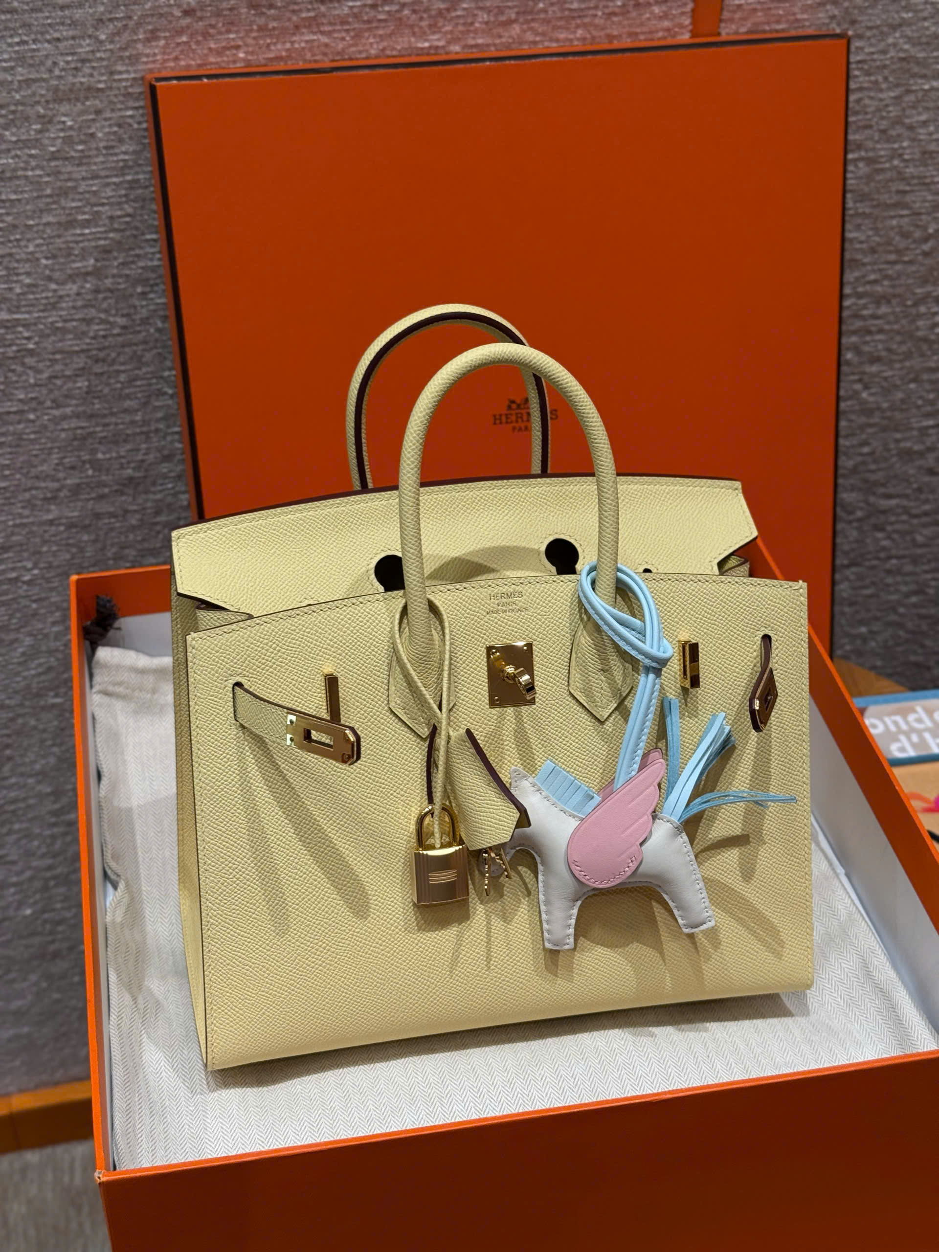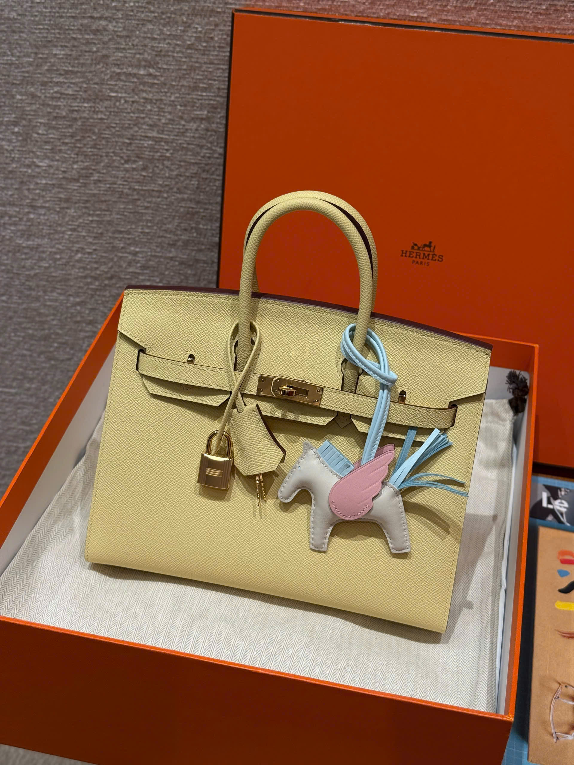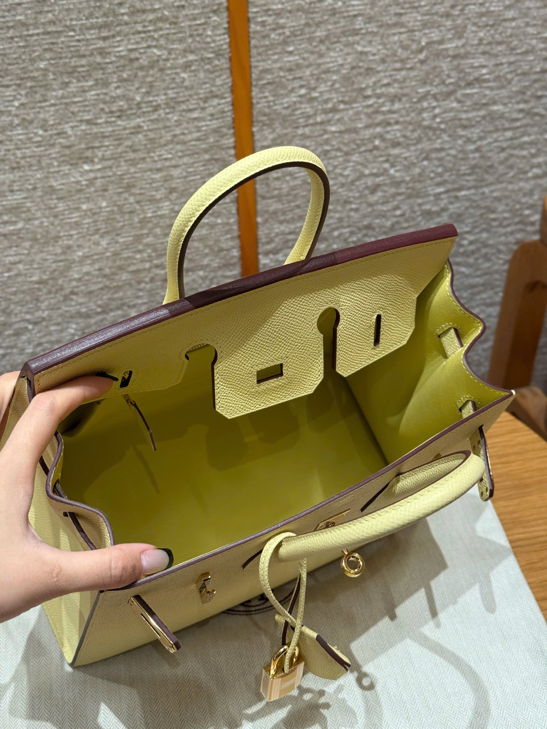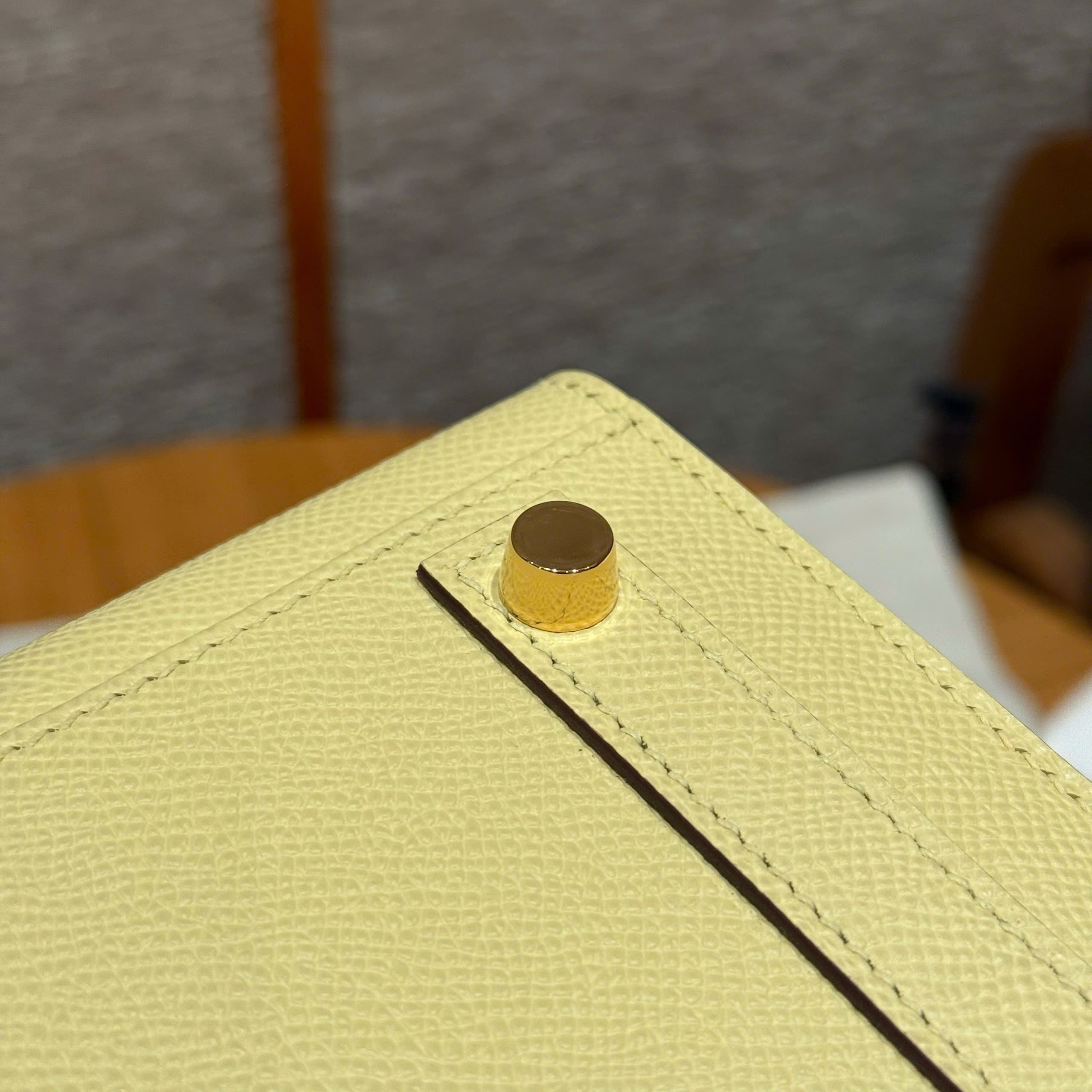 Platinum 25cm, chick yellow, imported French palm-grain cowhide, inner seams, gold buckles, fully handcrafted, custom-made ‼ ️
