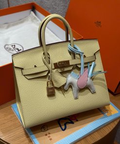 Bạch kim 25cm, màu vàng nhạt, da bò vân cọ nhập khẩu từ Pháp, đường may bên trong, khóa vàng, hoàn toàn thủ công, đặt làm riêng ‼️