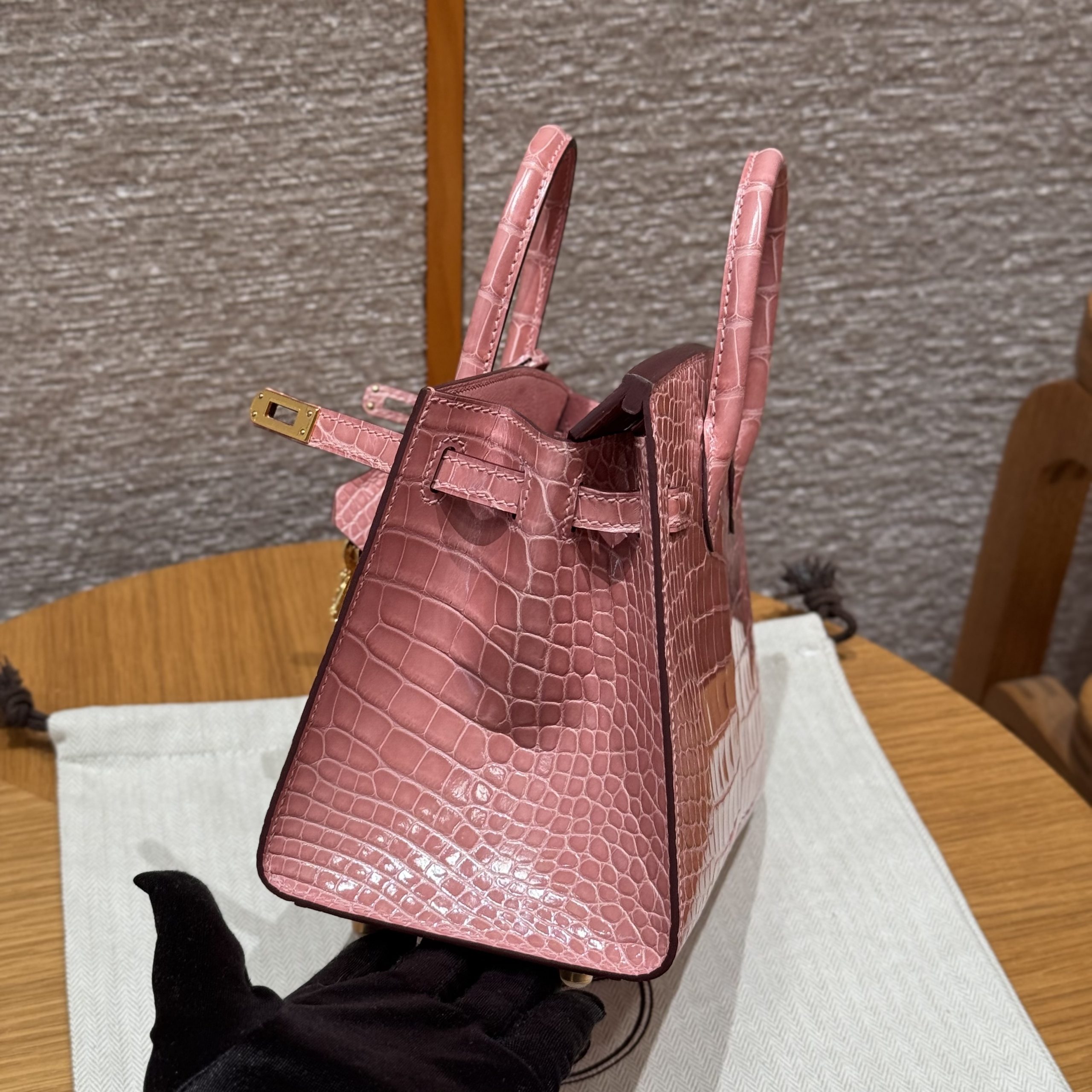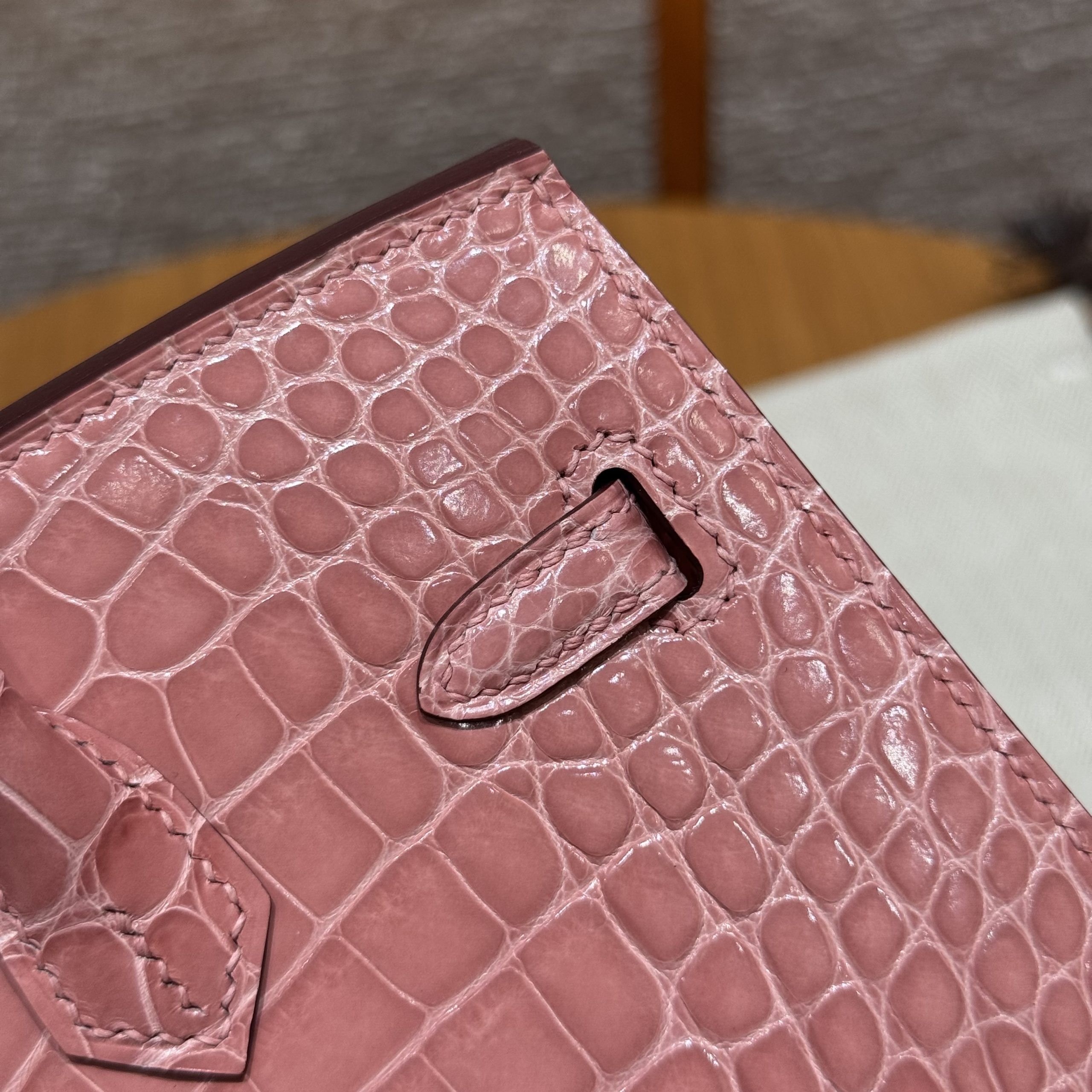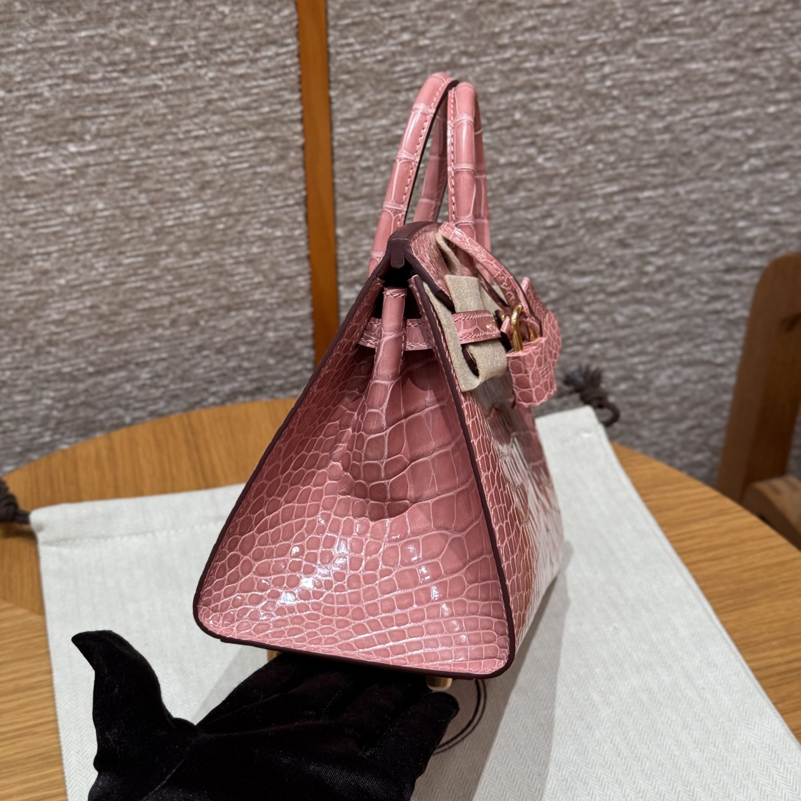 Platinum 20cm, bột sữa lắc, nhập khẩu từ Pháp, da cá sấu Mỹ sáng bóng, đường may bên ngoài, khóa vàng, cao cấp, hoàn toàn thủ công theo yêu cầu ‼️