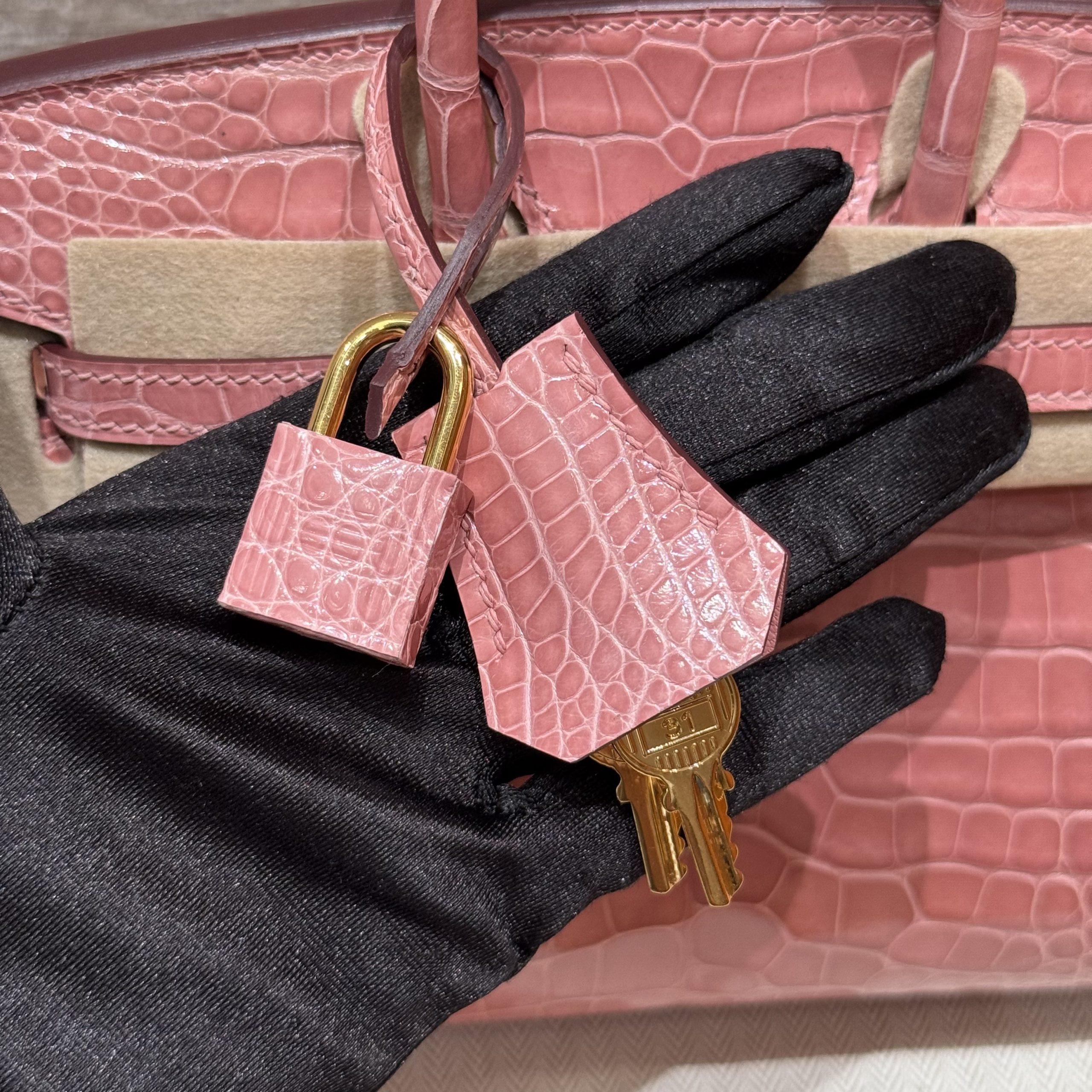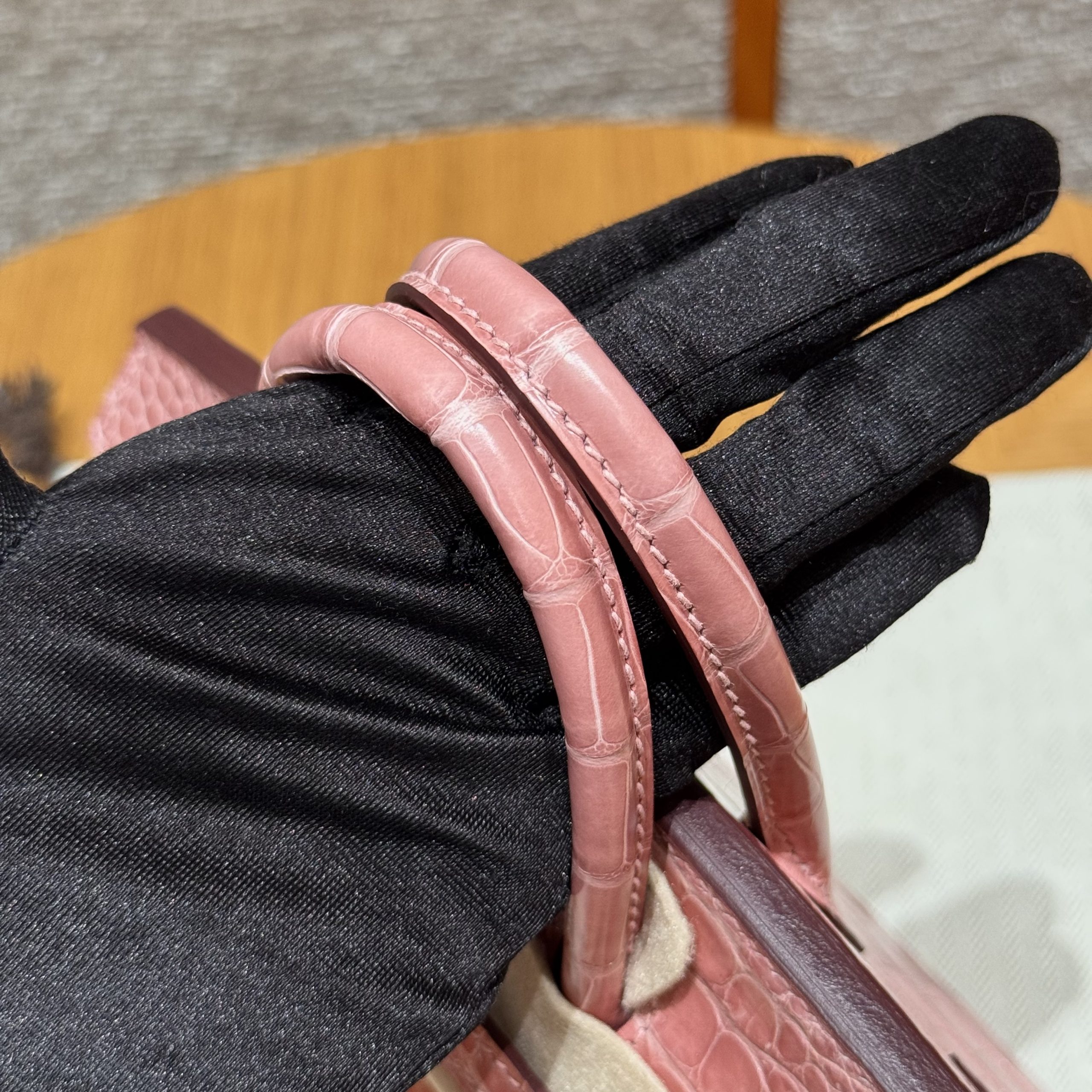Platinum 20cm, milkshake powder, imported from France, shiny American alligator, outer seams, gold buckles, high-end, fully handmade custom ‼ ️