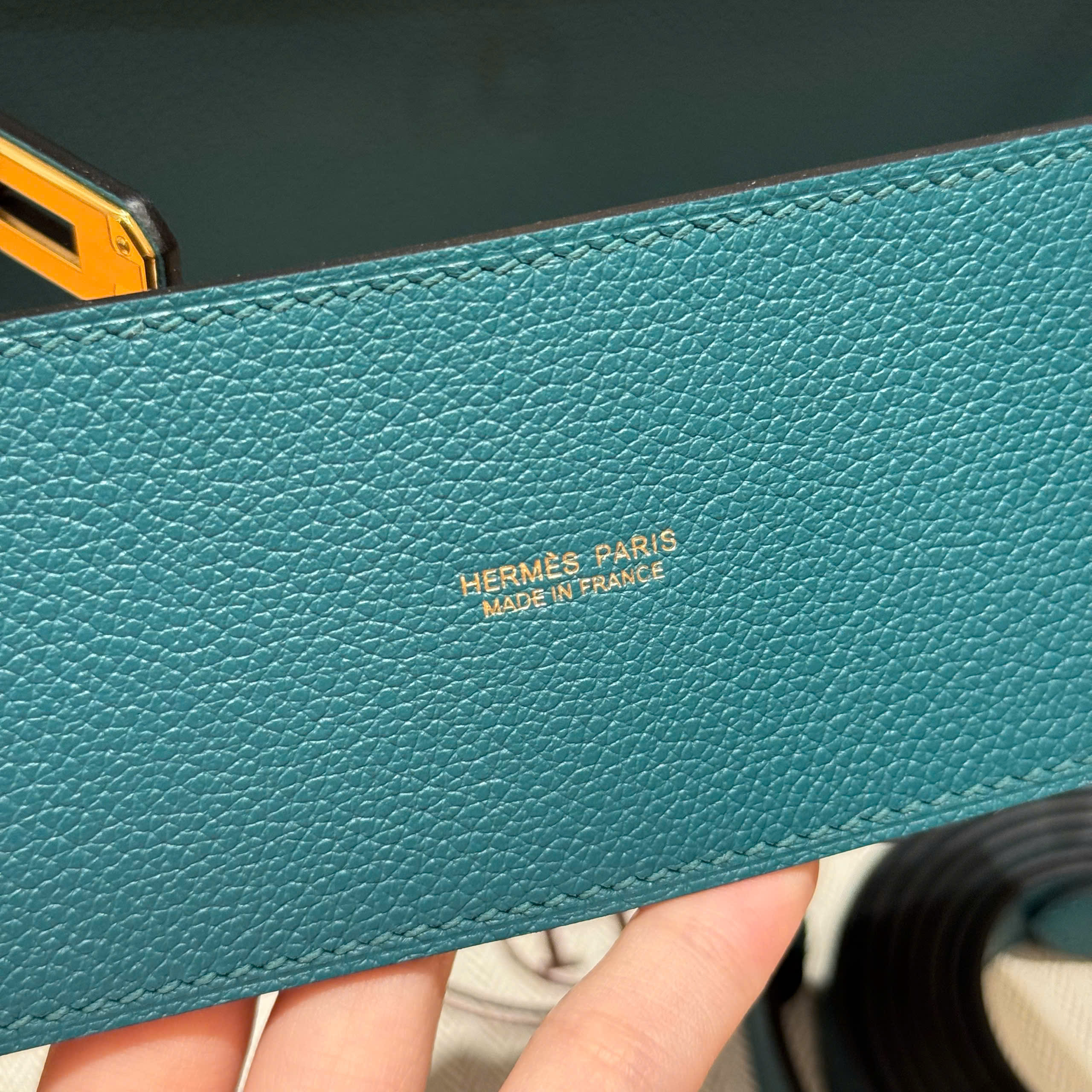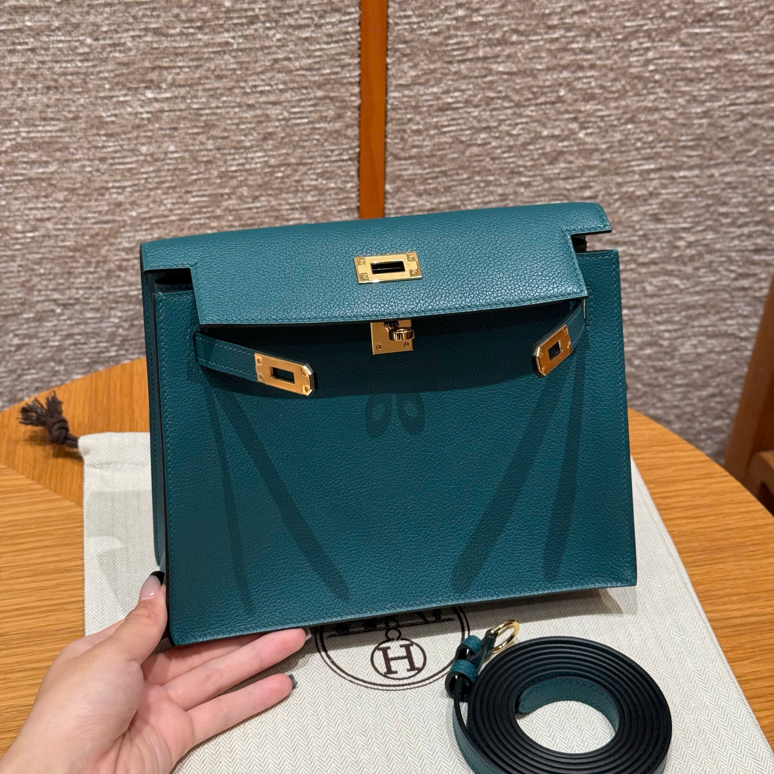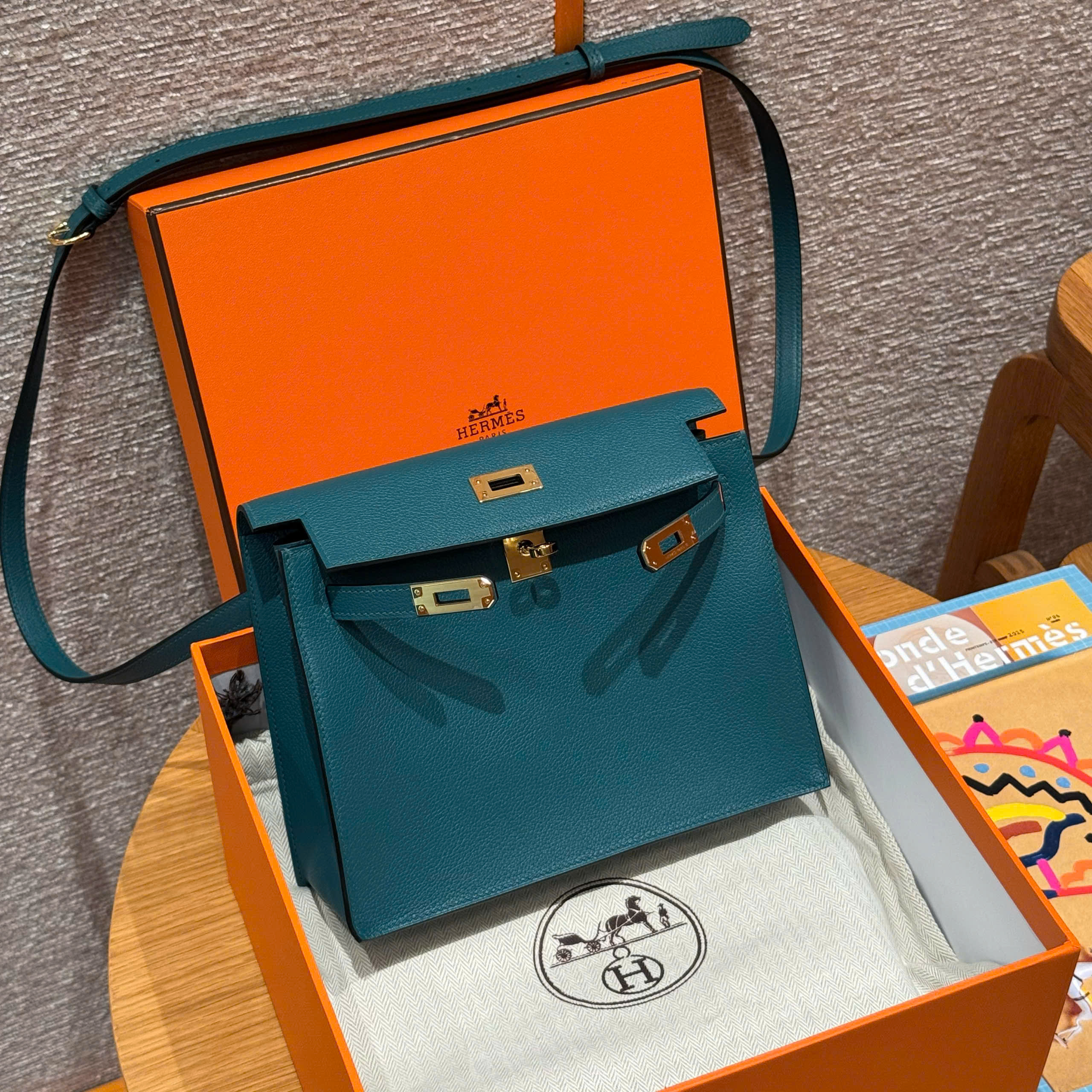 Túi Kelly Danse, màu xanh Bosphorus, da Eve, nhập khẩu từ Pháp, da bò thật, khóa vàng, hoàn toàn thủ công, đặt làm riêng độc quyền ‼ ️‼ ️