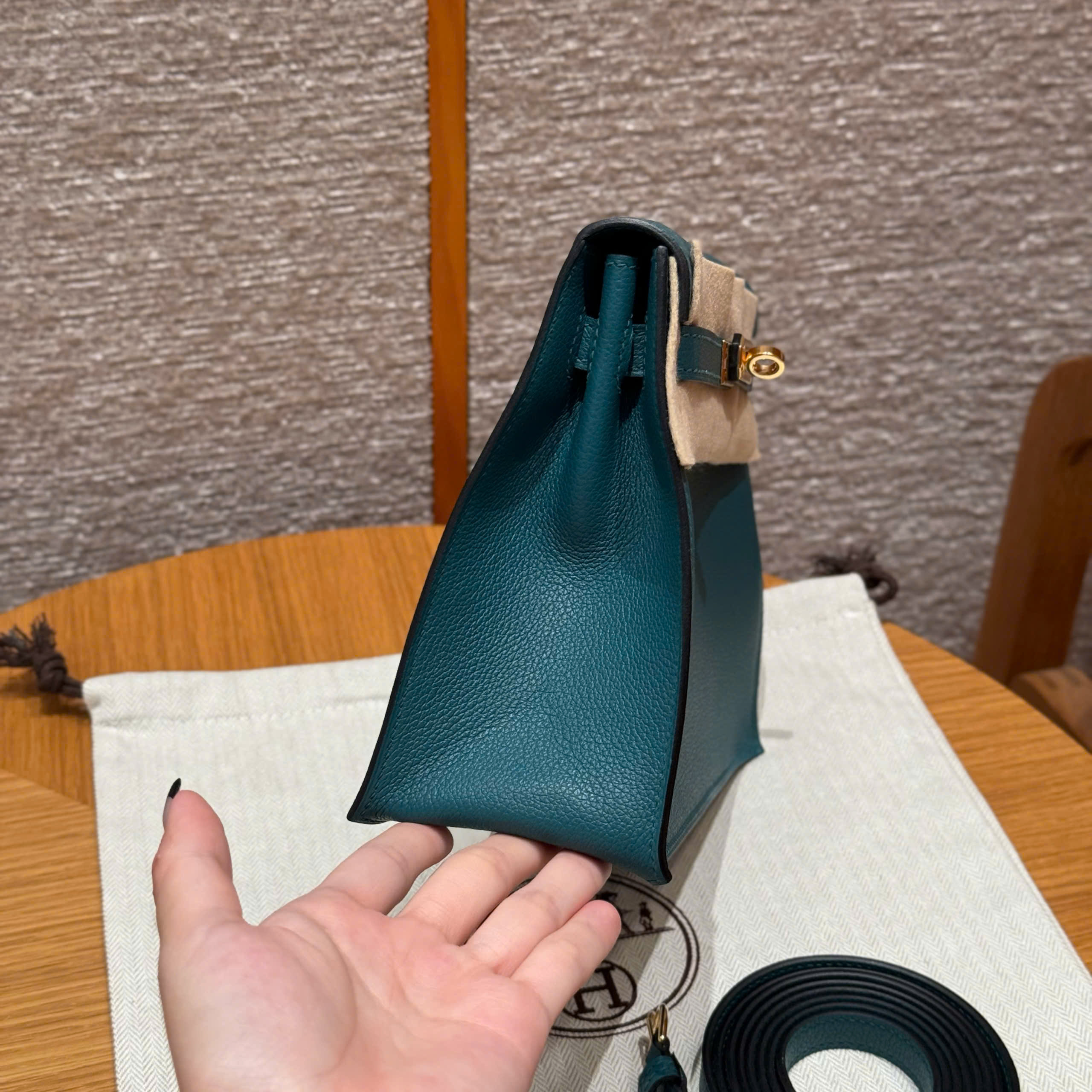Kelly Danse Bag, Bosphorus Green, Eve leather, imported from France, genuine cowhide, gold buckle, fully handcrafted, exclusive custom-made ‼ ️‼ ️