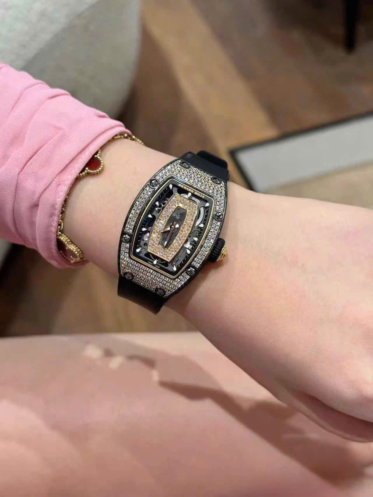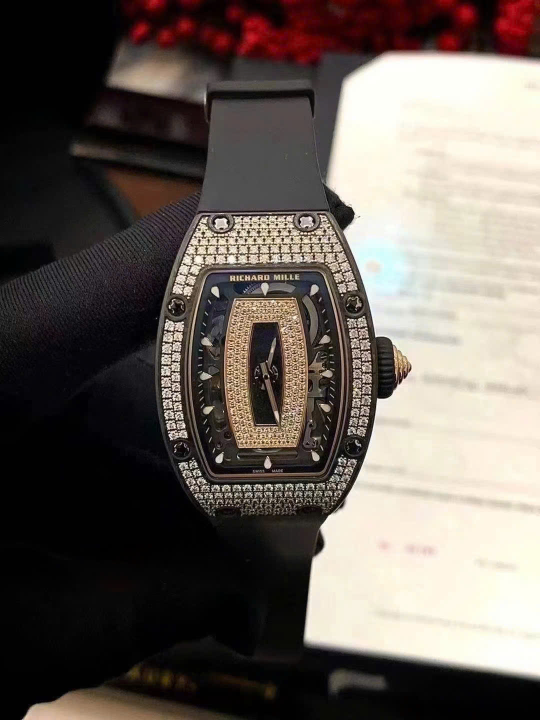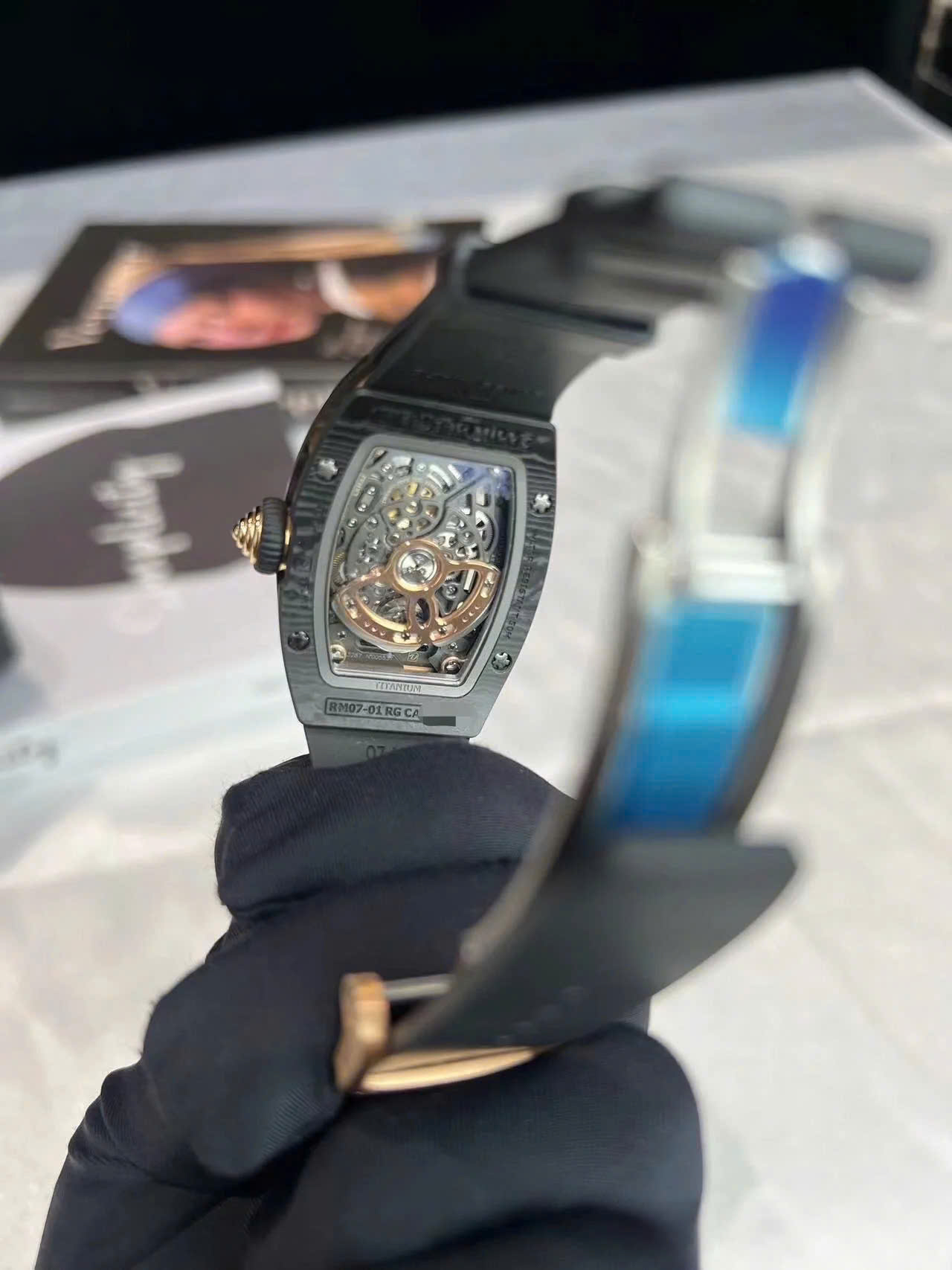 • Form: Tonneau shape (wine barrel shape) – typical of Richard Mille, creating a luxurious feeling, different from traditional round watches.